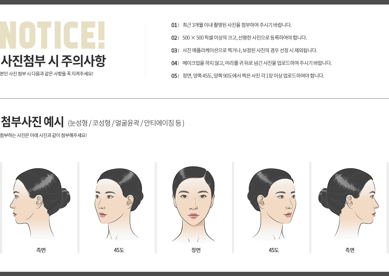 1)필수 항목:이름,나이,휴대전화,이메일,직업,키,몸무게,사이즈,관심부위